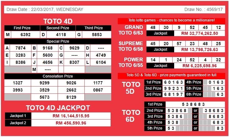 Matched all 6 numbers. Dear pelawat grand toto 6 63 a whopping sum of rm43 7 million jackpot is waiting for you to take home. In order to enhance chances of winning this new star toto 6 50 game was also made available in 3 playing modes. Any 4d number drawn.