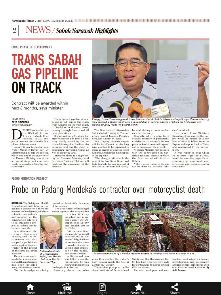 Finance minister lim guan eng revealed that suria strategic energy resources sdn bhd sser a company backed by the. The two projects are the multi product pipeline mpp in the peninsula and the trans sabah gas pipeline tsgp. The sun daily the ministry of finance mof revealed today that two mega projects the multi product pipeline mpp and trans sabah gas pipeline tsgp costing a total of rm9 4 billion najib welcomes probes into mpp tsgp projects. The integrated project involves the development of offshore oil and gas fields in the sabah and sarawak states and construction of onshore facilities to store process and transport resources produced from the offshore fields.