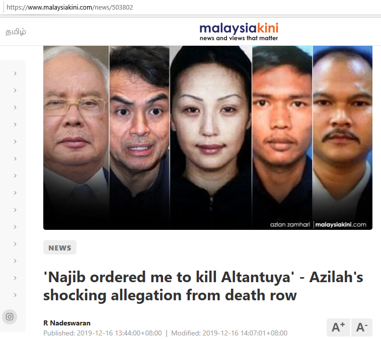 Mmo azilah hadri the ex police commando sentenced to death for murdering altantuya shaariibuu never set foot outside the kajang prison the entirety of 2019 the prison department said today kit siang moots grand meeting of lawyers to discuss fresh altantuya murder probe.